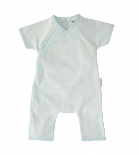 A mother will be able to dress her new baby boy gently and easily, with this gorgeous little pale blue stripe kimono style onesie.