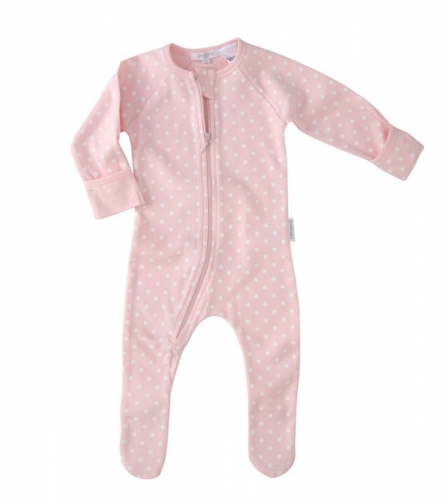 This cozy little pale pink spot Purebaby long sleeve bodysuit is lovely for your baby to sleep in as well as for day wear. It is made from 100% certified organic cotton.